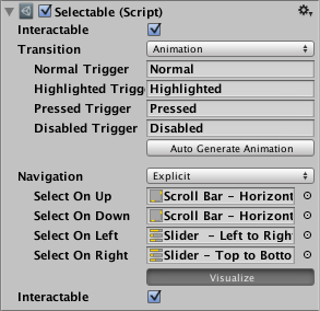 버튼이나 토클 같이 선택이 가능한 UI 오브젝트들은 Selectable 클래스를 상속받는다